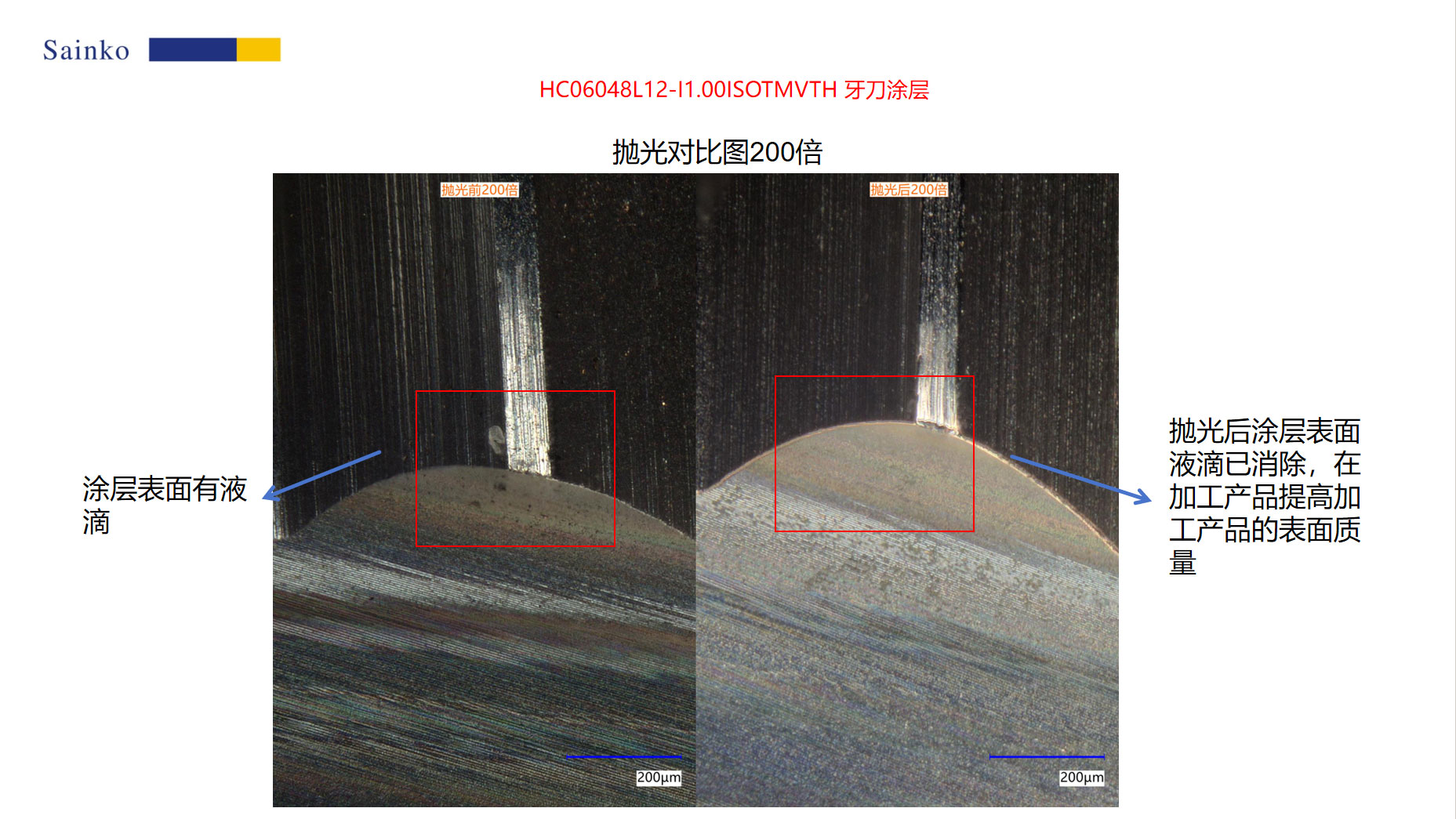經(jīng)處理后,銑刀涂層表面液滴完全消除,表面平整光滑,反射一致性顯著提升。該工藝有效改善了涂層質(zhì)量,提升了刀具穩(wěn)定性與加工表面光潔度