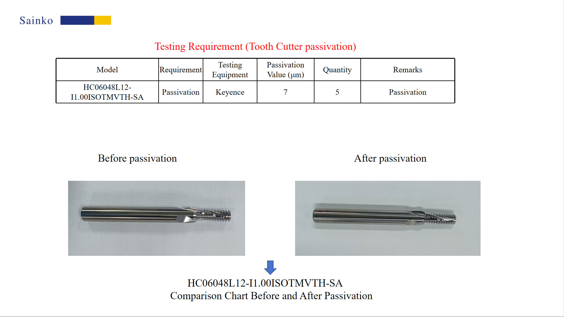 Through this passivation treatment, the overall cutting performance of the milling cutter has been significantly improved, and the stability of the tool has been enhanced, providing reliable tool support for subsequent high-precision machining. The specific test data and microscopic results are detailed in this report.